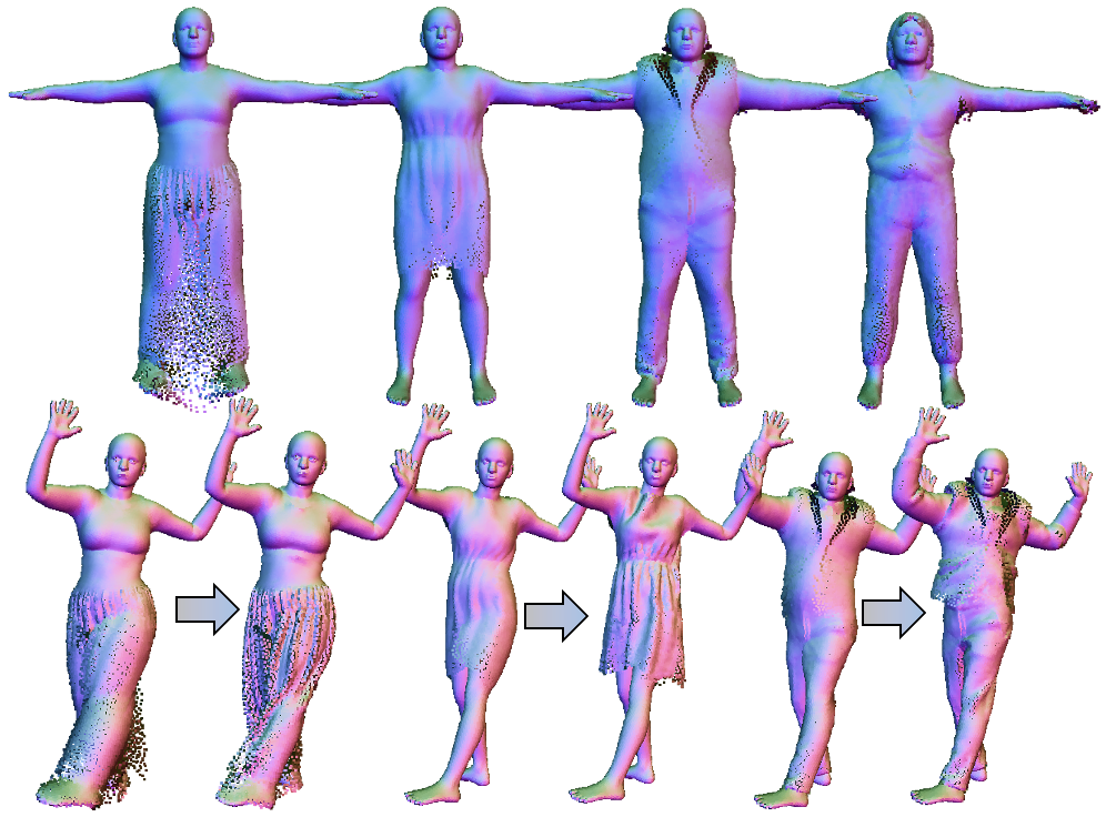 [1] Ma, Q., Yang, J., Tang, S., and Black, M. J., The Power of Points for Modeling Humans in Clothing. In ICCV, 2021